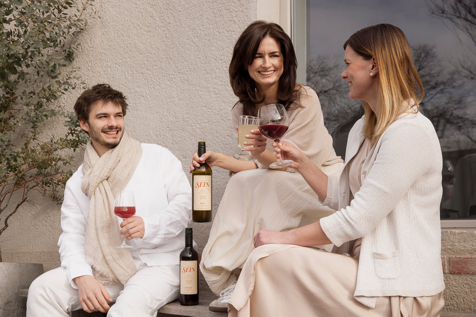 Und weil alles im Fluss ist, führte der Gedanke Sonja Grabner wie von selbst zu Christof Winkler-Hermaden, Winzer und Molekularbiologie im steirischen Vulkanland. Ohne vorher anzurufen. Ohne Termin. Der spontan vorgetragene Gedanke fiel auf fruchtbaren Boden. Aus dem Gedanken mit einem Getränk dem Sein zu entsprechen wurde